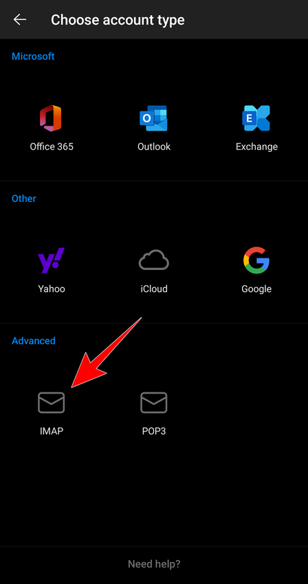 - Επιλέξτε IMAP και συμπληρώστε τα πεδία: