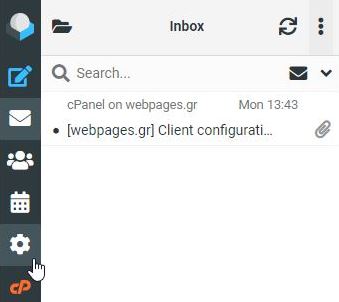 Έπειτα, μέσα στο RoundCube Webmail interface πατάτε το γρανάζι (settings/ρυθμίσεις) που βρίσκεται στην κάθετη μπάρα αριστερά