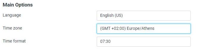 Έπειτα, διαλέγετε το time zone (η Ελλάδα έχει GMT+2)