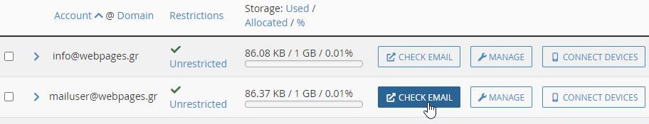 και στο λογαριασμό email που επιθυμείτε και επιλέγετε CHECK EMAIL