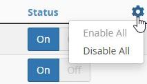 ‼ Σημείωση: Για να ενεργοποιήσετε ή απενεργοποιήσετε όλα τα domains του λογαριασμού σας, κάντε κλικ στο εικονίδιο με το γρανάζι και επιλέξτε Enable All ή Disable All αντίστοιχα.