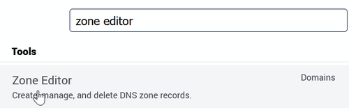 Στο search bar του cPanel πληκτρολογήστε Zone Editor και πατήστε την αντίστοιχη επιλογή.