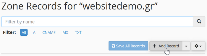 Από τη σελίδα Zone Editor μπορείτε να δημιουργήσετε και να διαχειριστείτε Records για τα domains σας.
