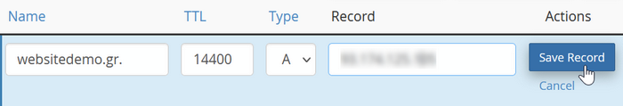 Αφού κάνετε την αλλαγή στο record πατήστε Save Record.